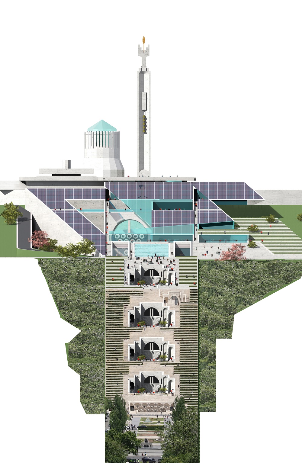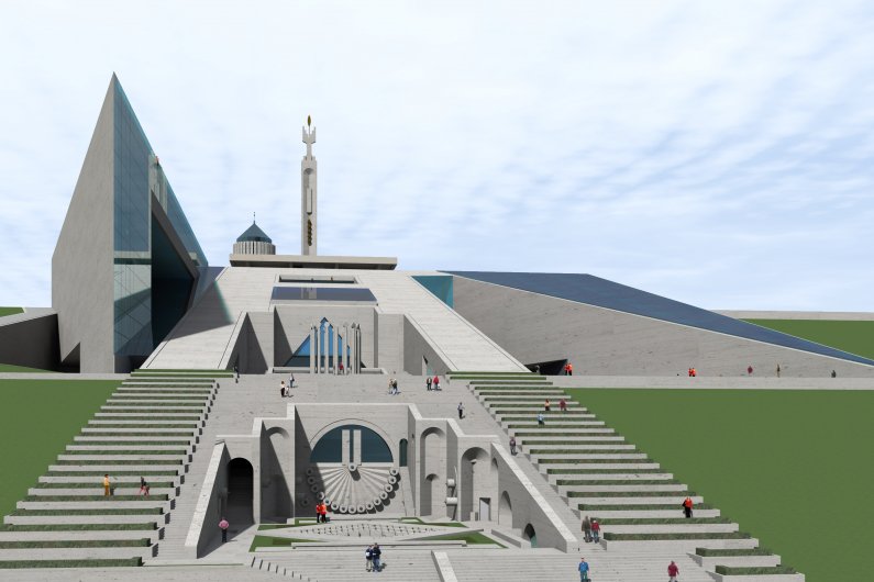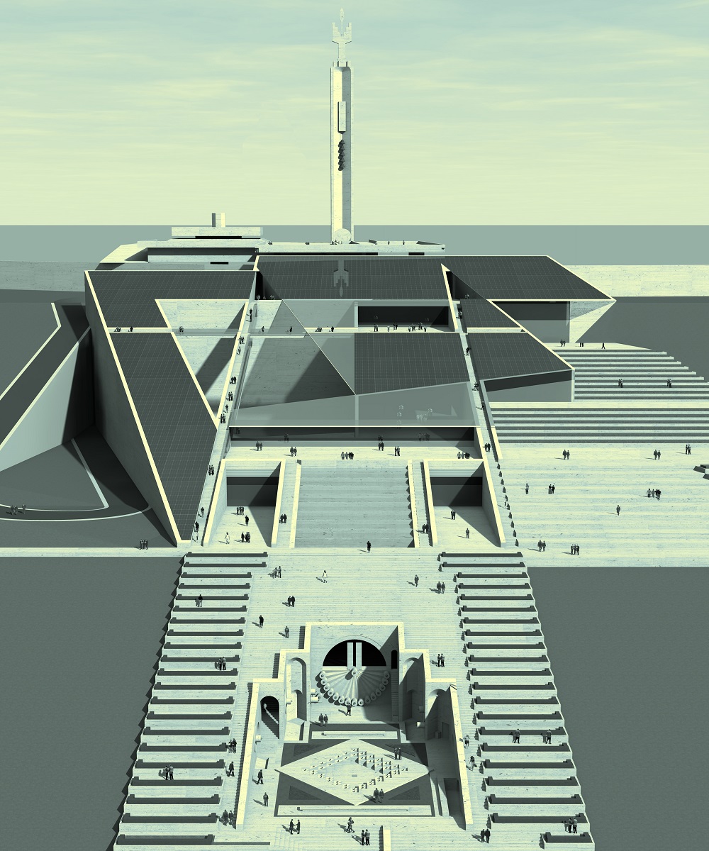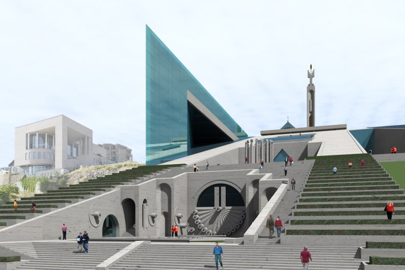 В первом проекте Аслан Мхитарян планирует построить в центральной части универсальный концертный зал имени Шарля Азнавура. В левой части Каскада намечается строительство гостиничного комплекса, а в правой – открытый зал на 3000 мест. В другом варианте архитектор предлагает построить вместо гостиницы музей (1200 кв. метров), как планировал Дж.Гафесчян, а в правой части – зал имени Шарля Азнавура на 1500 мест. Проект предусматривает также двор площадью 1600 кв. метров – агору и фонтаны, а также кафе и места досуга. Музей и концертный зал будут покрыты солнечными панелями, которые обеспечат электроснабжение данной территории. Будет функционировать также открытый эскалатор.