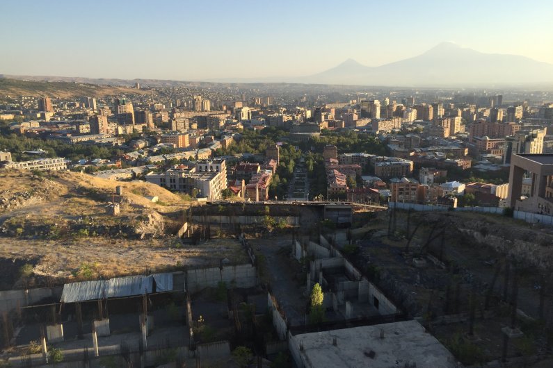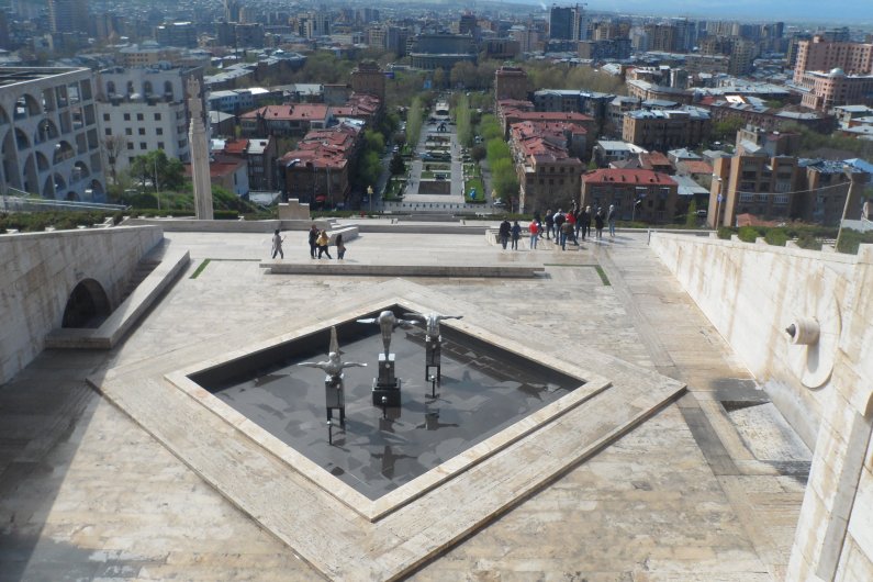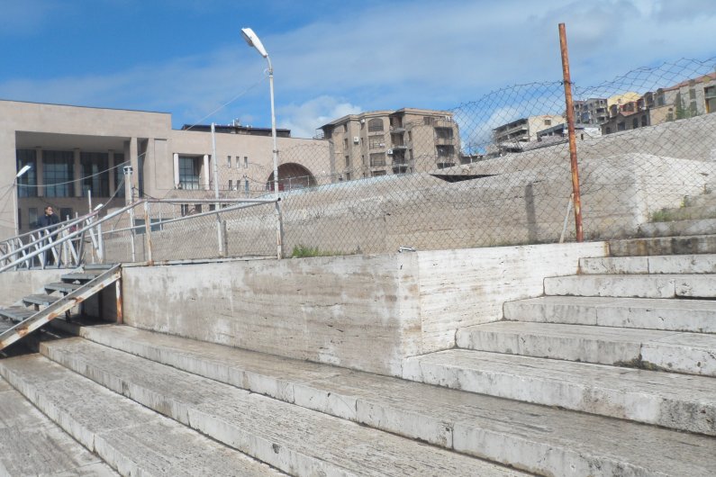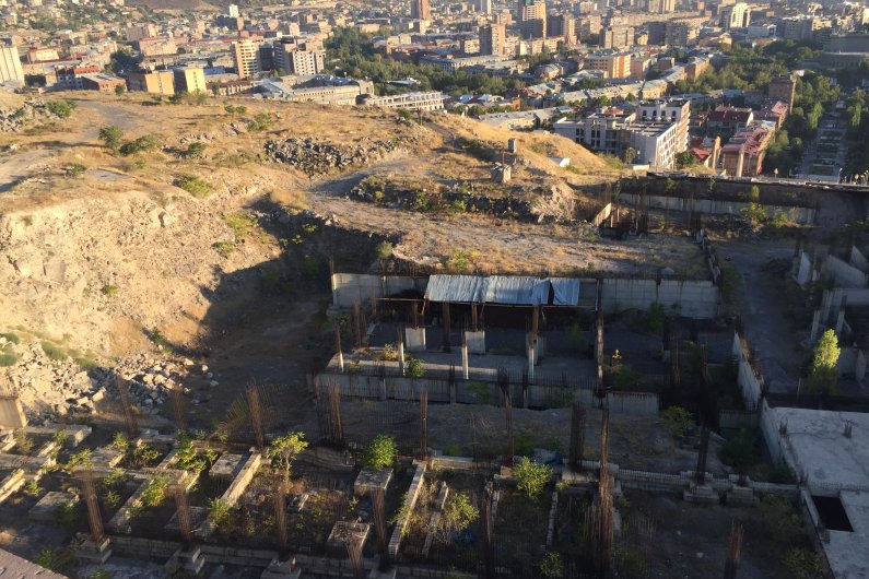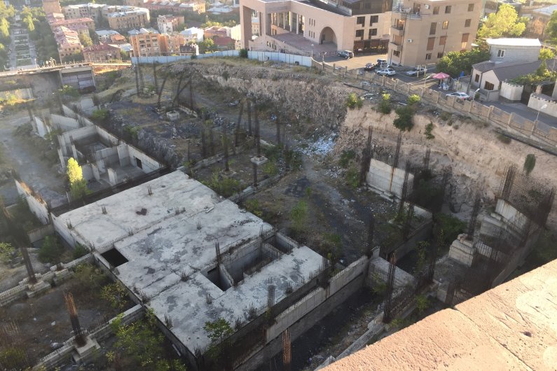 Восхождение по Каскаду – это испытание на нелегкое, хотя и интересное, преодоление высоты, наградой за которое становится возможность насладиться прекрасной панорамой Еревана. Однако после четвертой площадки Каскада белое травертиновое счастье заканчивается: перед нами открывается гигантский черный котлован какого-то недостроенного здания. Он был вырыт в 2007 году с тем, чтобы построить продолжение Каскада и придать ему завершенный вид. Джерард Гафесчян, на чьи средства был достроен и благоустроен весь комплекс, планировал построить здесь музей по проекту нью-йоркского архитектора Дэвида Хатсона. По ходу работ выяснилось, что проект в несколько раз превышает предусмотренный заказчиком бюджет. Из-за разногласий между заказчиком и архитектором проект был остановлен, судьба этой территории площадью 9.8 га и протяженностью 78 м до монумента «Возрождение Армении», остается нерешенной.
