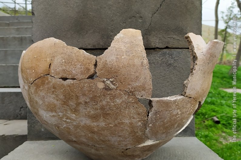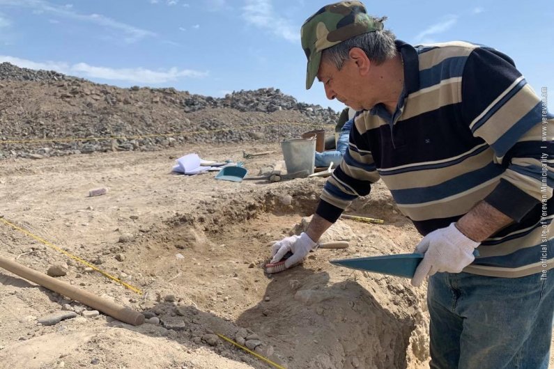 - Наш филиал «Кармир Блур» достаточно тесно сотрудничает со строительной компанией, которая ведет строительство на трассе «Север-Юг» на участке, соединяющем улицу Ширак с Аргавандским шоссе, где и были обнаружены фрагменты глиняной утвари. В итоге строительные работы на этом участке были приостановлены… и мы начали контрольные профилактические раскопки, в результате которых смогли зафиксировать археологические слои, содержащие разную керамику, где в одном контексте сочетается “урартская элита” и местная, так называемая “полированная” керамика. Кроме того, было раскопано еще одно строение с правильными рядами, параллельными друг другу, из щебня, с засыпкой из речной гальки… Это может быть стена, или часть гробницы, помост… Кроме того, в слое мы обнаружили нижнюю часть глиняной амфоры. Очевидно, проделали яму, чтобы поместить этот сосуд в слой речных камней… Возможно, сосуд предназначался для кремации или других целей. Главное, что мы обнаружили слой человеческой деятельности VII-VI вв. до н.э. на окраине холма Кармир блур.